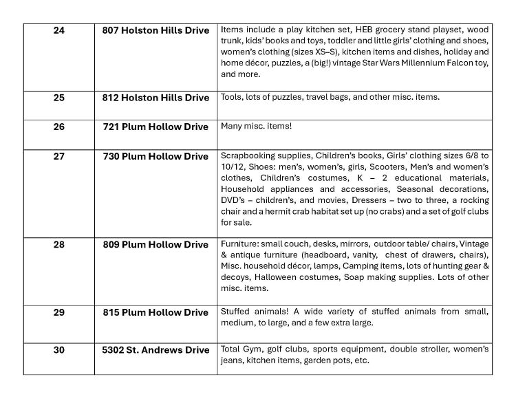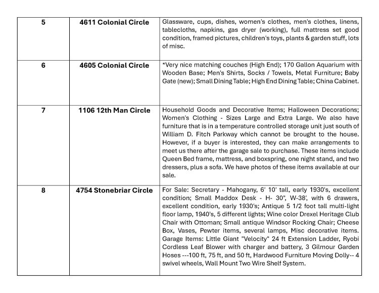PEBBLE CREEK NEIGHBORHOOD GARAGE SALE Map of Sales Here: Google Map Link PDF of Sale Location List Here: Sale Location List Also, Photos of Sale Location List Below: